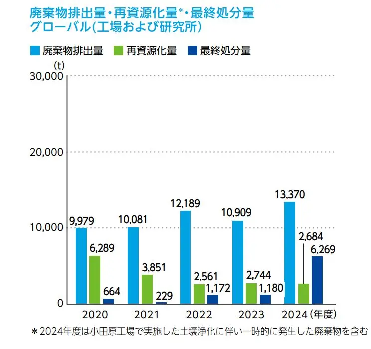 第5期中期経営方針に基づき、廃棄物の不適正処理の未然防止策の一環として、工場・研究所・オフィス等の事業所を対象とするEHS内部監査では、廃棄物処理法の遵守状況を重点的に確認しています。また、各事業所では、法律で求められている廃棄物処理業者の現地確認(法令の遵守状況、契約の履行状況、許認可状況、実際の処理状況など)を、定期的に実施しています。