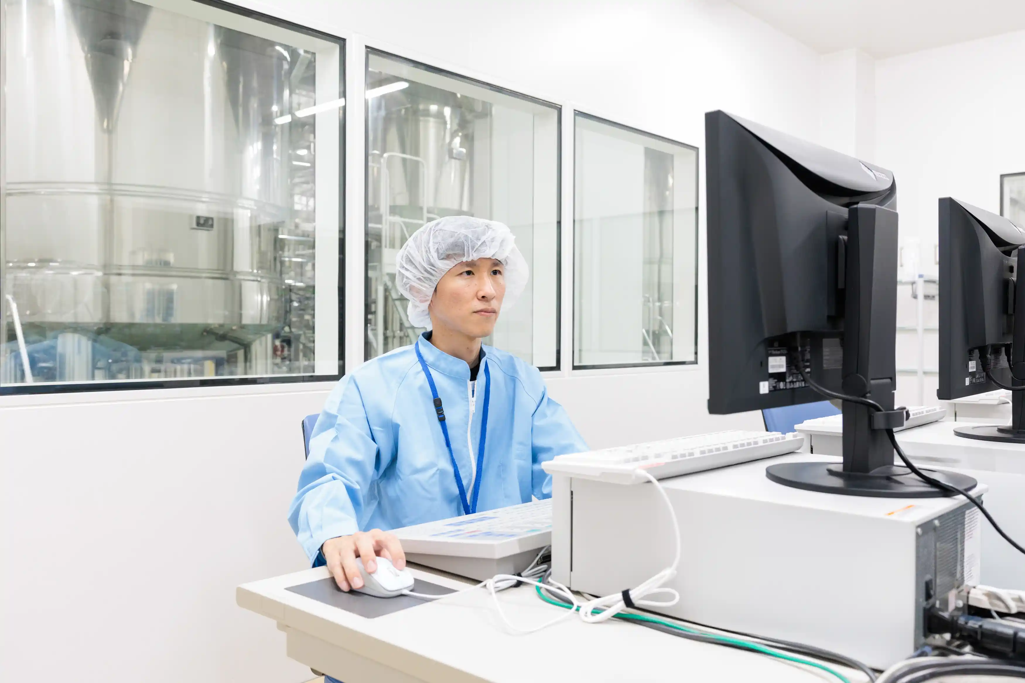 原薬の品質を担保するためには、数多くの製造パラメーターを精密にコントロールする必要があります。そして、新たに導入された製造設備は、これまでの設備と比べて数倍の大きさなので、単純にスケールアップをするのではなく、研究所での小規模試験を踏まえて、仮説を立てながら、パラメーターを一つひとつ検証していきました。