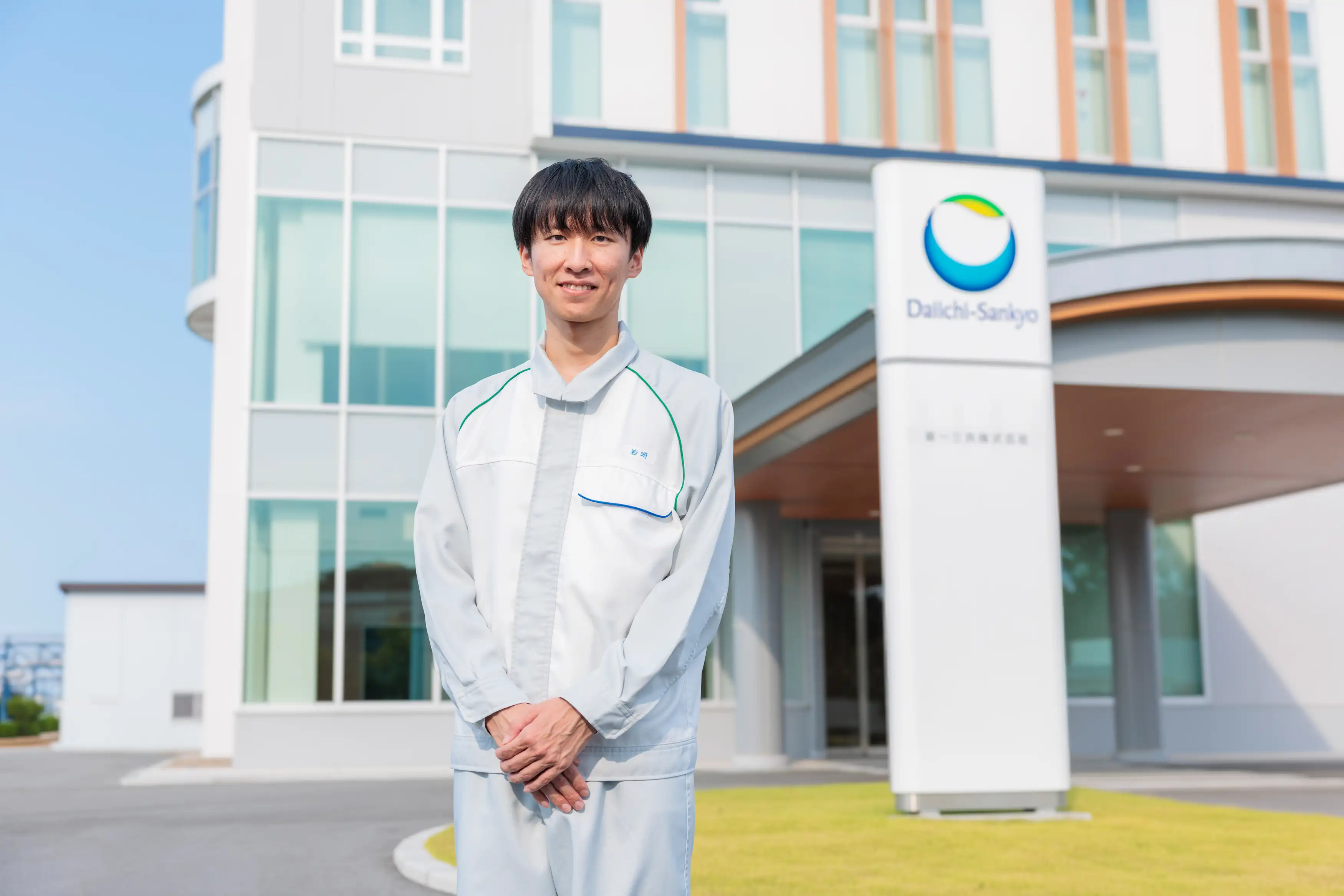 やりがいを感じる瞬間は、病院で処方された医薬品に「第一三共」の名前を見かけたとき。私たち生産技術のメンバーだけでなく、研究や開発、情報提供、メディカルアフェアーズ、信頼性保証や安全管理、コーポレートなど、幅広い分野から多くの仲間の力が結集して、患者さんへ医薬品が届けられている。その一端を担えていることに、誇りを感じます。企業理念にある「世界中の人々の健康で豊かな生活に貢献する」。その実現を、今日もどこかで支えていると思えることが、私の原動力です。