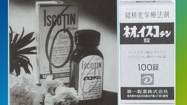 日本で結核が不治の病と認識されていた1940年代、第一三共の前身のひとつである第一製薬株式会社(以下、第一製薬)は1947年に日本初の結核性腫瘍の治療薬を発売しました。それ以降も結核治療薬の開発を次々と進め、1954年には「ネオイスコチン」を発売。1951年まで日本人の死因のトップだった結核の死亡率低下の一翼を担いました。